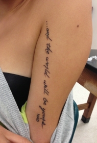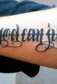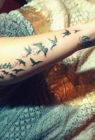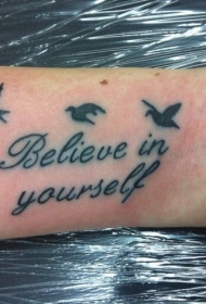 小臂可爱的小羽毛与字母黑灰纹身图案