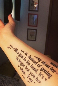 手臂不寻常的英文字母组合成鸟形纹身图案