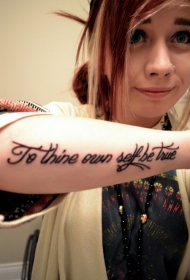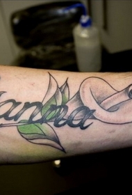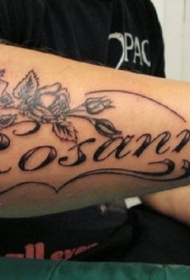 浪漫的黑白玫瑰和字母手臂纹身图案