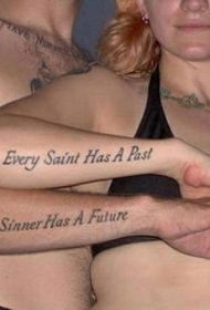 情侣手臂钥匙和心形锁英文字母纹身图案