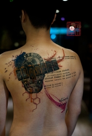 背部赌博轮盘与字母骷髅彩色纹身图案