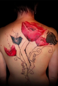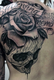 背部华丽的纪念玫瑰字母和骷髅纹身图案