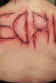 背部令人毛骨悚然的血腥割肉字母纹身图案