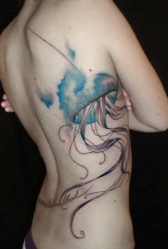 背部血腥的恐怖电影女僵尸与字母纹身图案