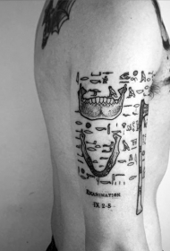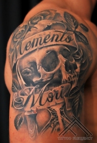 大臂黑色骷髅和字母玫瑰纹身图案