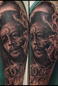 大臂独特的黑色男人肖像字母纹身图案