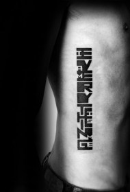 侧肋涂鸦风格黑色字符纹身图案