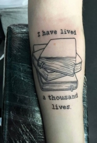 手臂黑色线条一叠书籍与字母纹身图案