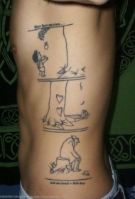 侧肋黑色线条创意三格漫画纹身图案