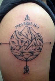 大臂黑色点刺old school山脉字母纹身图案