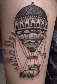 大腿黑色卡通气球与床结合纹身图案