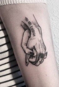 小臂浪漫主题黑色手与字母纹身图案