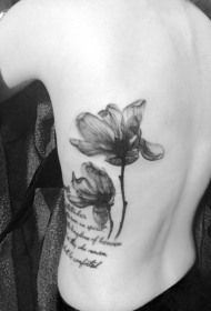 侧肋惊人的漂亮黑色罂粟花与字母纹身图案