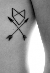 胸部黑色线条翅膀和逼真的钻石纹身图案