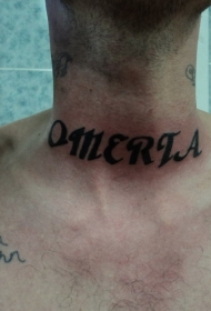颈部黑色字符纹身图案