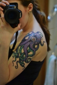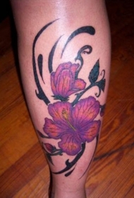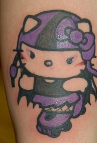 腿部卡通紫色凯蒂猫滚轮纹身图案