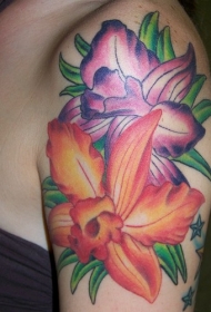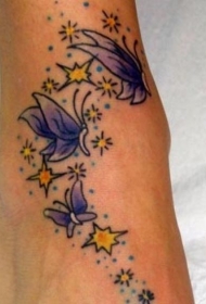 脚背彩色漂亮的蝴蝶和星星纹身图片