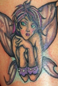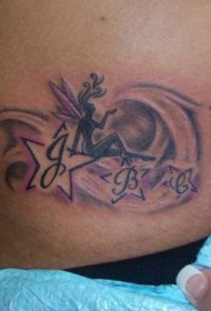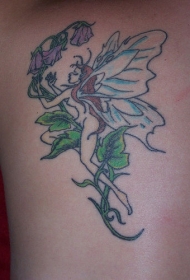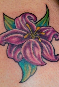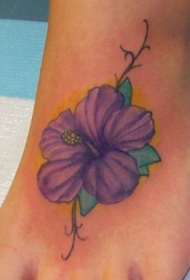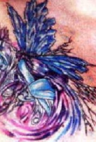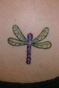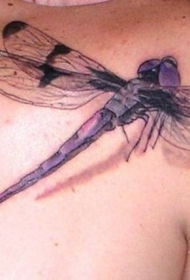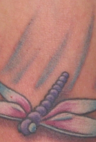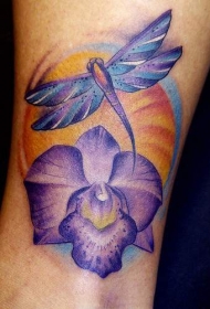 夕阳下的蜻蜓和紫色花朵纹身图案