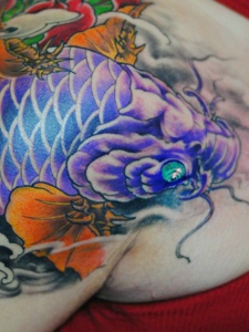 过肩紫色大鲤鱼纹身图片惊艳抢眼