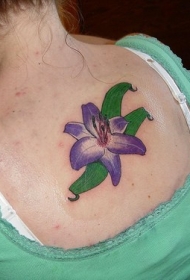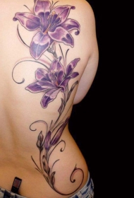 女生背部紫色的百合花纹身图案