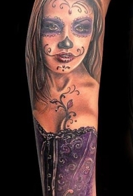 美丽的死亡女郎紫色衣服纹身图案