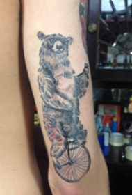 熊纹身 男生手臂上骑自行车的狗熊纹身图片