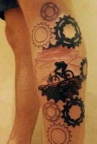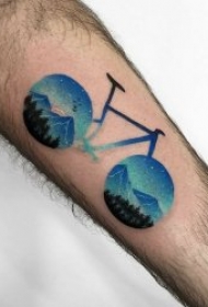 自行车齿轮纹身 男生手臂上人物和自行车纹身图片