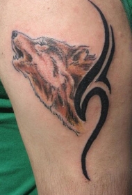 棕色的嚎叫狼头与黑色部落标志纹身图案