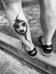 几何元素纹身 男生小腿上黑色的足球纹身图片
