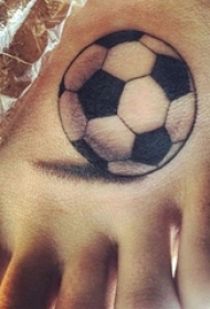 女生脚背上黑色线条素描点刺技巧创意足球纹身图片