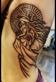 侧肋神秘的女士和特殊符号点刺纹身图案