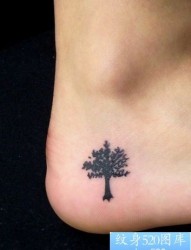 女孩子脚部小巧的图腾树纹身图片
