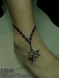 女孩子脚踝处精致小巧的脚链纹身图片