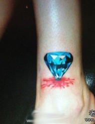 女孩子脚腕处彩色钻石纹身图片