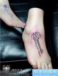 一幅女孩子脚部蝴蝶结钥匙纹身图片