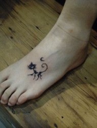 女孩子脚部可爱的图腾猫咪纹身图片