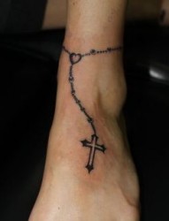 潮流的脚部脚链纹身图片