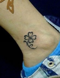 女孩子脚踝处小清新-图腾四叶草纹身图片