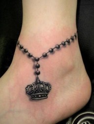 女孩子脚踝皇冠脚链纹身图片