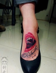 一幅美女脚部另类的吸血鬼唇印纹身图片