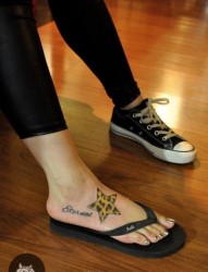 女孩子脚部好看的豹纹五角星纹身图片