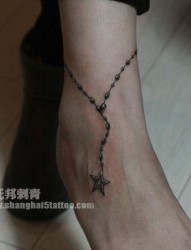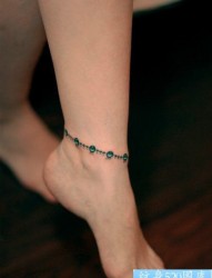 女孩子脚踝处精美潮流的脚链纹身图片