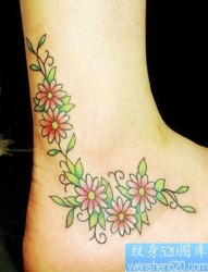 脚部唯美好看的花卉藤蔓纹身图片