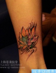 女人喜欢的腿部彩色莲花纹身图片