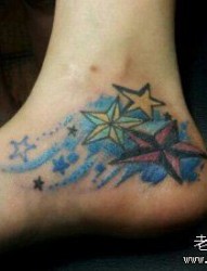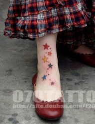 女孩子脚部彩色五角星纹身图片