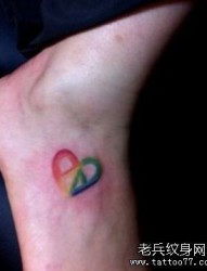 女孩子脚背一幅彩色爱心纹身图片