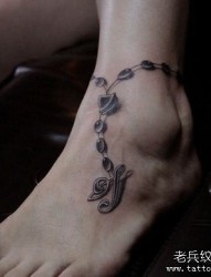 美女脚腕处经典的脚链纹身图片