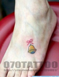 女孩子脚背小巧潮流的铃铛纹身图片