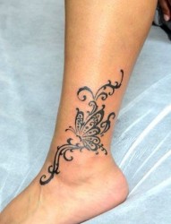 美女脚部好看的图腾蝴蝶纹身图片