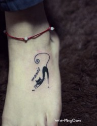 美女脚部可爱的图腾猫咪纹身图片